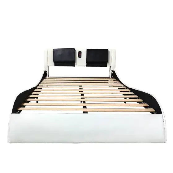 Elevate your bedroom experience with the Haven Home Faux Leather Upholstered Platform Bed Frame, a perfect blend of style, technology, and comfort. This modern bed frame features integrated LED lighting, Bluetooth music connectivity, and a backrest vibrating massage system, creating a multi-sensory relaxation experience right in your home.