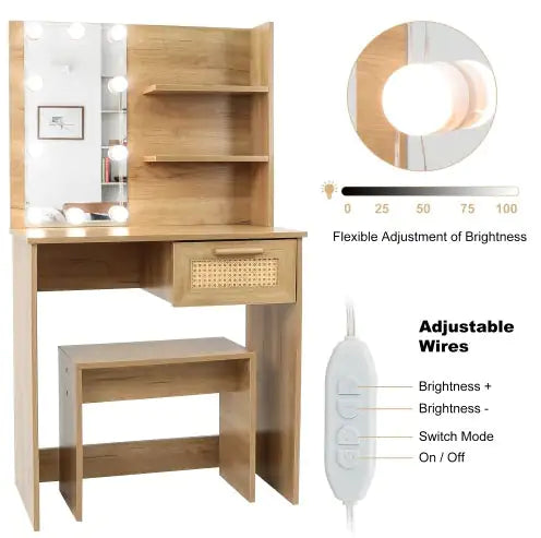 Haven Home LED Vanity Desk with Stool Natural Wood