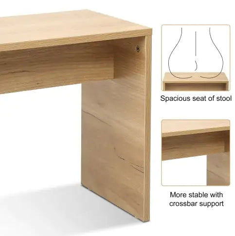 Included with the set is a matching cushioned stool, perfectly sized for comfort during long grooming sessions. The modern, natural wood finish adds warmth and sophistication to any space while blending effortlessly with contemporary or classic décor styles.