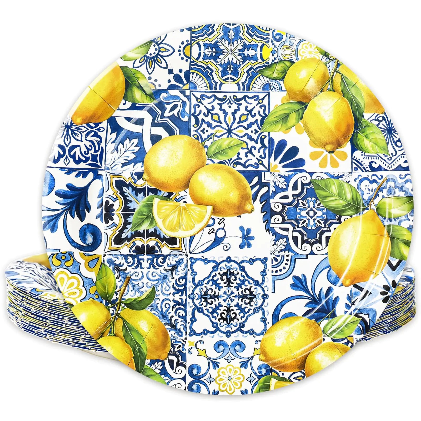 The **9 Inch Lemon Disposable Paper Plates 24Pcs** are designed to bring a fresh, vibrant touch to your table while keeping your events simple and stress-free. Featuring a stylish lemon and tile-inspired pattern in bright yellow and blue, these plates instantly enhance the look of any gathering, making them perfect for summer-themed occasions and celebrations.